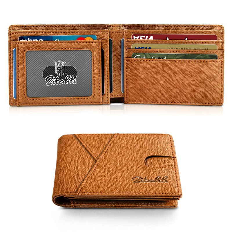 Zitahli Carteras de los hombres Slim Rfid cuero plegable con caja de regalo, Negro carbón, Casual