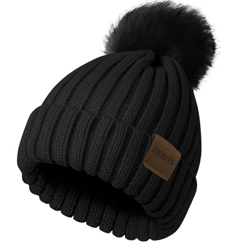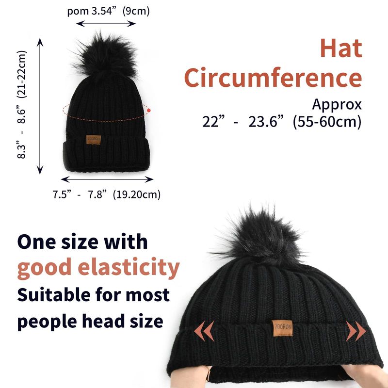 ZOORON Gorro de punto de invierno para mujer con pompón de piel sintética, gorro de punto cálido