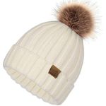ZOORON Gorro de punto de invierno para mujer con pompón de piel sintética, gorro de punto cálido