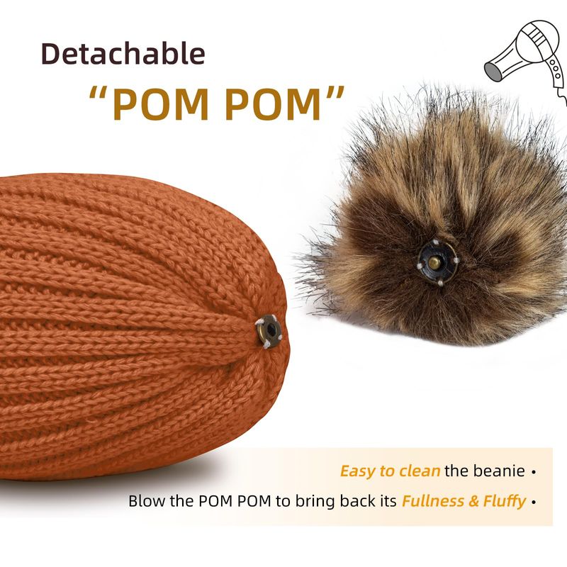 ZOORON Gorro de punto de invierno para mujer con pompón de piel sintética, gorro de punto cálido
