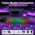 Conexión de triple modo con batería de 6000 mAh: se conecta a través de Bluetooth 5.0, 2.4GHz inalámbrico o USB-C. Cambia sin problemas entre hasta 5 dispositivos. Una batería de 6000 mAh garantiza un rendimiento duradero, y el cable de nailon de 5.9 ft incluido te mantiene alimentado en modo cableado.