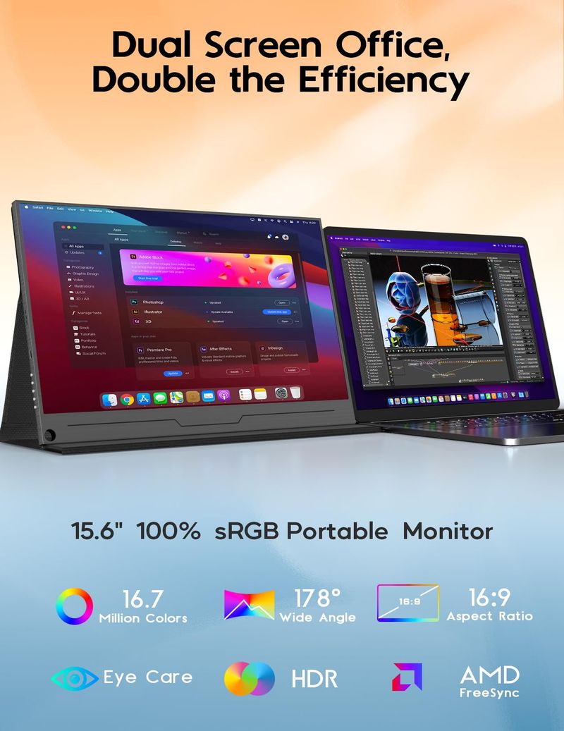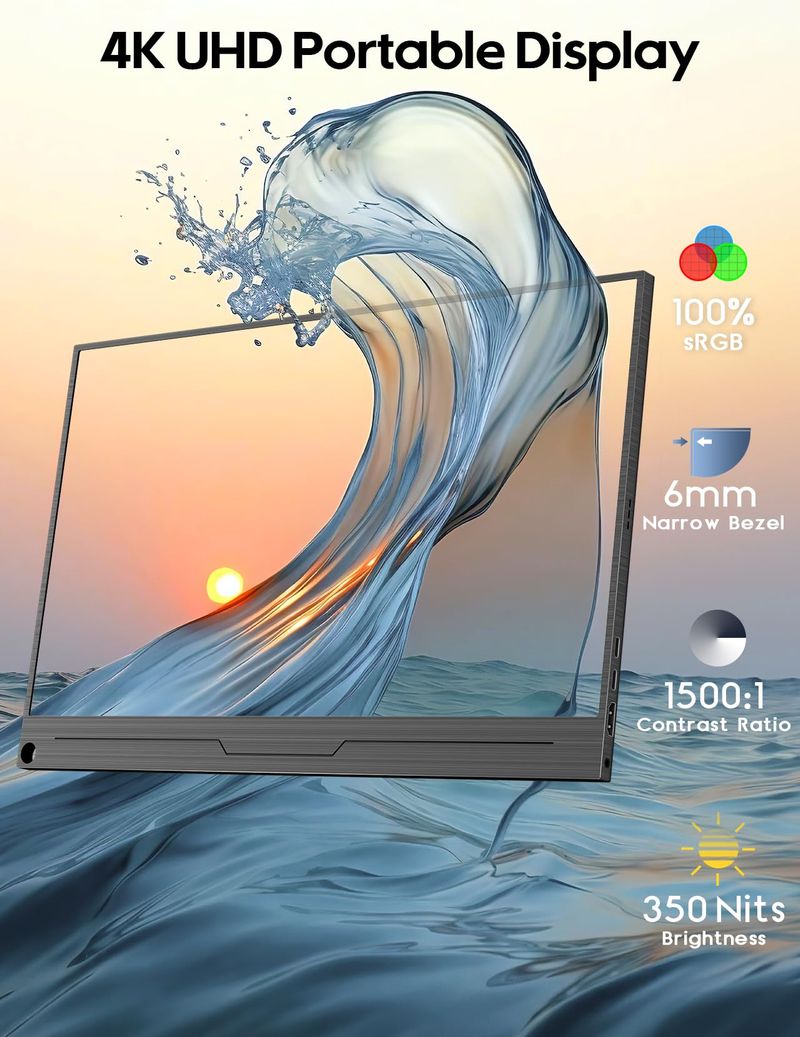 ZSCMALLS Monitor portátil 4K, monitor extendido para portátil de 15.6 pulgadas 3840 x 2160, 1500:1